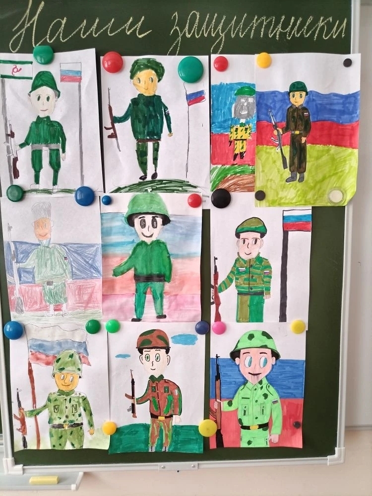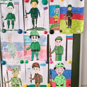 Приближается День защитника Отечества. «Пифагорцы» организовали выставку рисунков «Наши защитники».