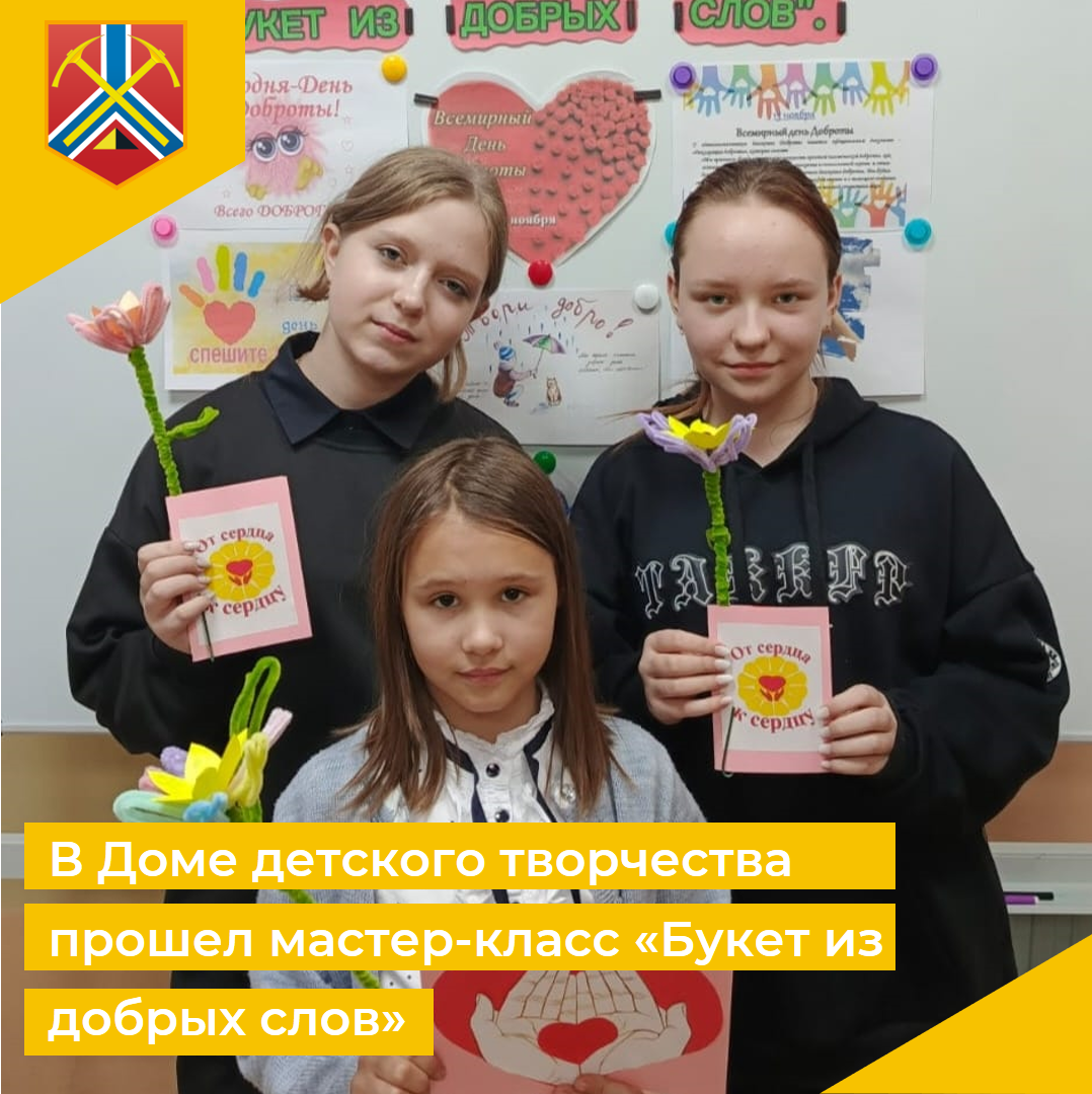 "Букет из добрых слов" - под таким названием педагог дополнительного образования Солопова Галина Витальевна провела мастер - класс. Воспитанники и педагоги Дома детского творчества с удовольствием приняли участие и научились делать цветы из синельной проволоки, в сердце цветка разместили второй цветок на котором написали самые добрые слова адресованные близким людям.
