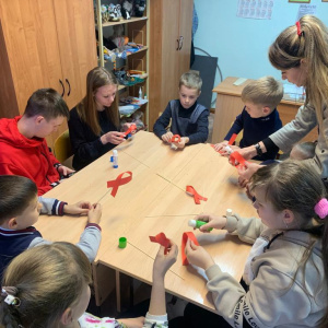 Традиционно во всем мире 1 декабря стартует глобальная акция - День борьбы со СПИДом. Воспитанники и педагоги Дома детского творчества присоединились к акции. Детские объединения "Мастерская волшебниц" и "Золотые ручки" под руководством педагогов Ямковой Н. П. и Дмитренко А. В. изготовили символ акции - красные ленточки и распространили их вместе с памятками среди жителей города.