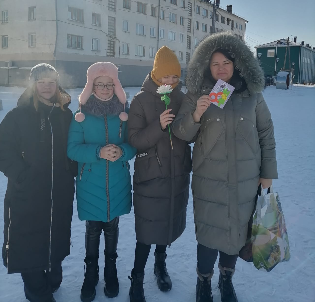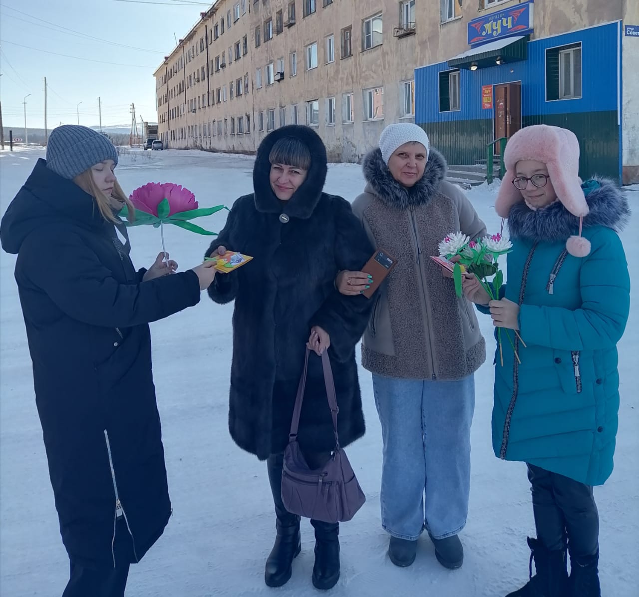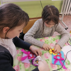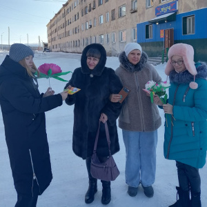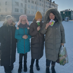 Воспитанники из объединения "Волшебная кисточка " под руководством педагога Солоповой Галины Витальевны присоединились к Всероссийской акции и изготовили поздравительные открытки и цветы своими руками, а затем подарили эти праздничные поделки и красивые добрые слова, женщинам на улицах города Сусумана.