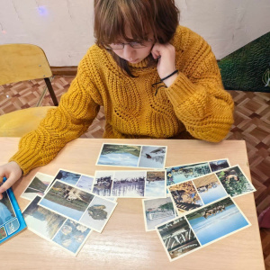 "Взгляд" педагог дополнительного образования Устинова Ирина Раверовна. Ребята с интересом слушали рассказ о творчестве художников - косторезов, мастериц по изготовлению национальных костюмов, рассматривали фотографии с творческих выставок, представленных в г. Магадане и других городах нашей страны.