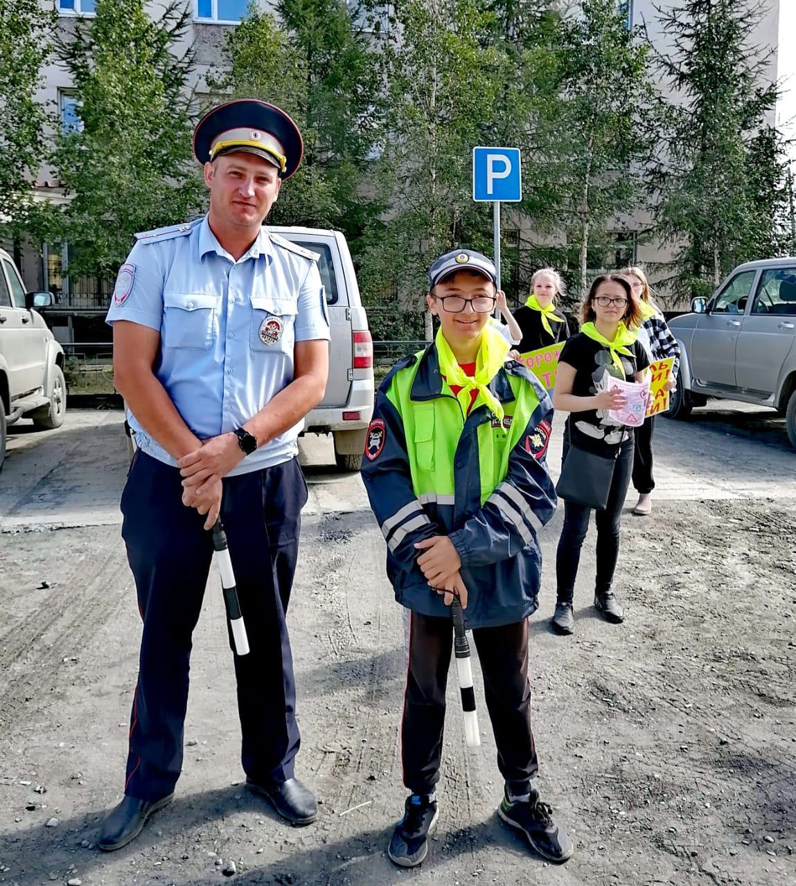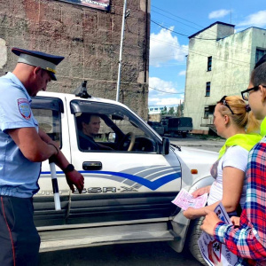 переодевшись в форму работника ДПС один из ребят вместе с инспектором останавливали автомобили в городе, и все вместе вручали водителям памятки о безопасном движении и внимательном отношении к пешеходам.