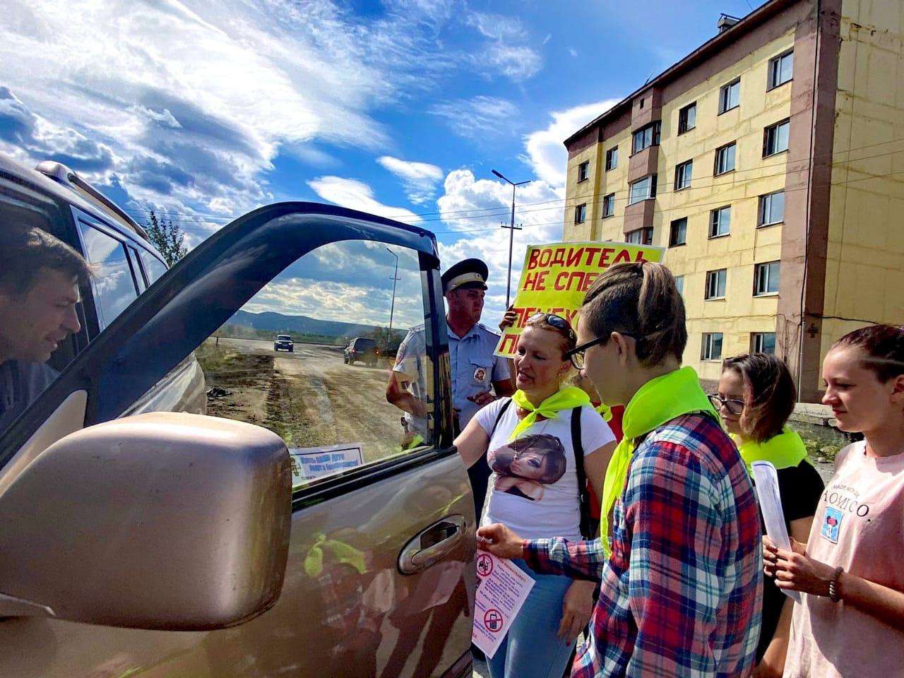 13 июля в рамках программы "Безопасное лето" подростки из трудового отряда "Авангард" при ЛОЛ "Фантазер", совместно с инспектором по исполнению административного законодательства отд ГИБДД по Сусуманскому району, старшим лейтенантом Муравьевым И. Н. провели акцию "Ради жизни на земле, соблюдайте ПДД". Ребята своими руками изготовили яркие плакаты с выразительными призывами и вышли с ними на улицы города, а потом