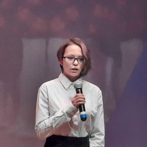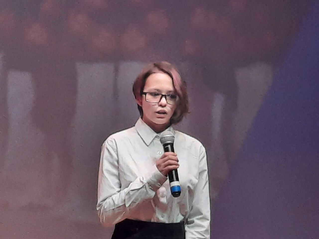 Хмелевич Гульмира, воспитанница детского объединения «Колымские звезды» в номинации «Художественное слово», подноминация «Авторское слово», в сольном исполнении стих собственного сочинения «Никто не забудет…».