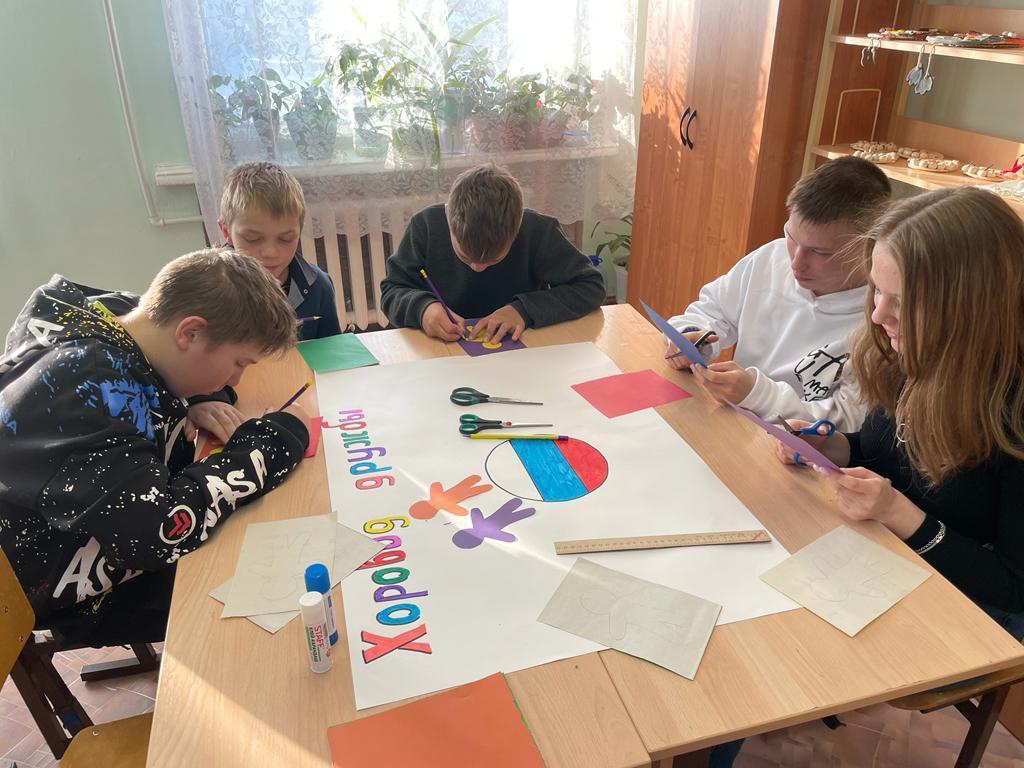 За дверями кабинетов Дома детского творчества проходят интересные занятия, 26 октября в преддверии Дня народного единства, педагоги дополнительного образования Дмитренко Александра Витальевна и Ямковая Надежда Петровна подготовили и провели мероприятие «Хоровод дружбы»