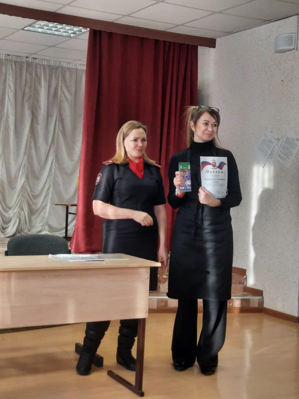 В актовом зале Дома детского творчества прошло награждение победителей конкурса детского художественного творчества «Сотрудники патрульно-постовой службы глазами детей», который прошел в преддверии 100-летия патрульно-постовой службы Министерства внутренних дер Российской Федерации. Капитан внутренней службы Закирова Г.Ш. торжественно вручила дипломы и подарки воспитанникам Дома детского творчества, принявшим участие в конкурсе