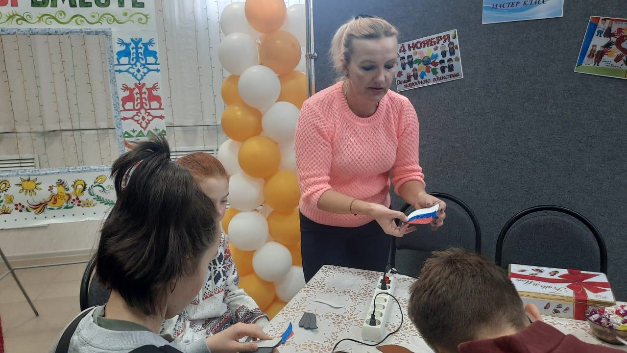 который символизирует сплоченность различных народов и представителей разных классов. В честь этого праздника педагог дополнительного образования Солопова Галина Витальевна провела в МБУ РЦД и НТ «Луч» мастер-класс «Россия - великая держава»