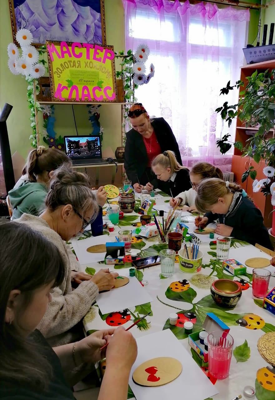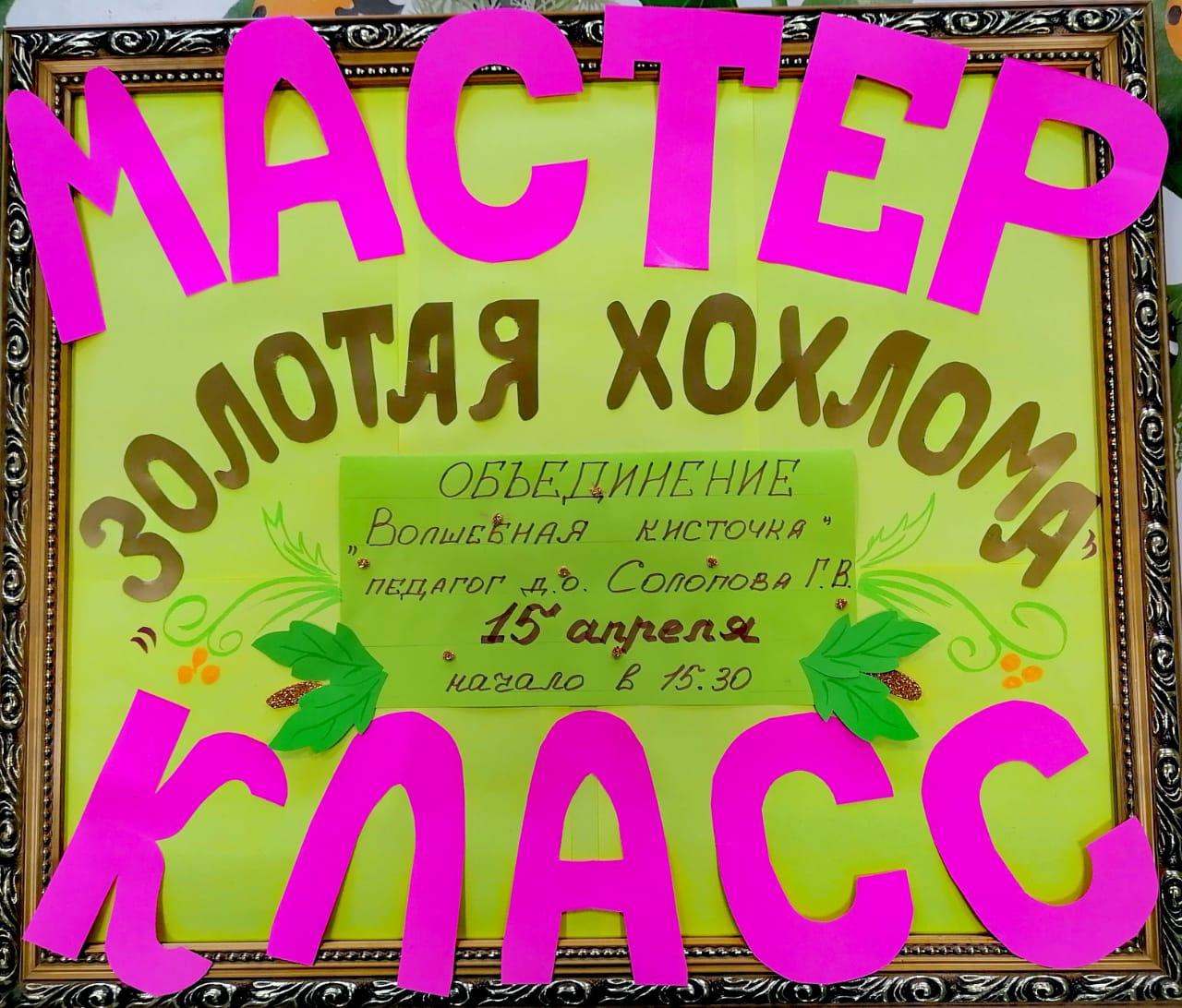 В рамках года культурного наследия народов России, 15 апреля в объединении «Волшебная кисточка», педагог Солопова Галина Витальевна провела мастер-класс «Золотая хохлома».