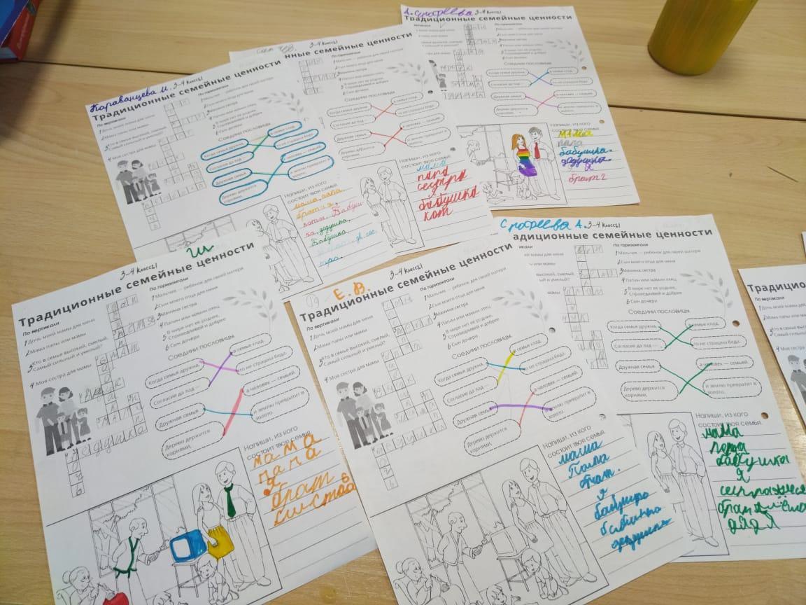 Педагоги дополнительного образования Евсикова Виктория Витальевна и Ямковая Надежда Петровна рассказали детям о том, что такое семья, семейные ценности и традиции. Полученные знания закрепили разгадыванием кроссворда «Семья». Так же каждый ребенок рассказал о составе своей семьи.