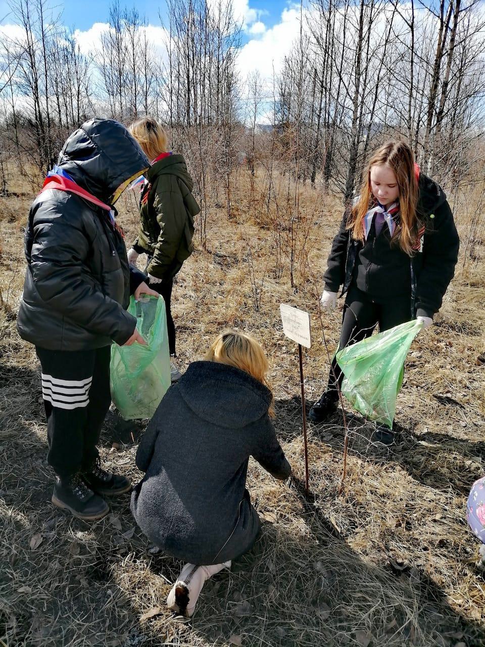 Ребята собрали весь мусор и сухую траву, а так же поправили таблички с фамилиями ветеранов, в честь которых высажены деревья.