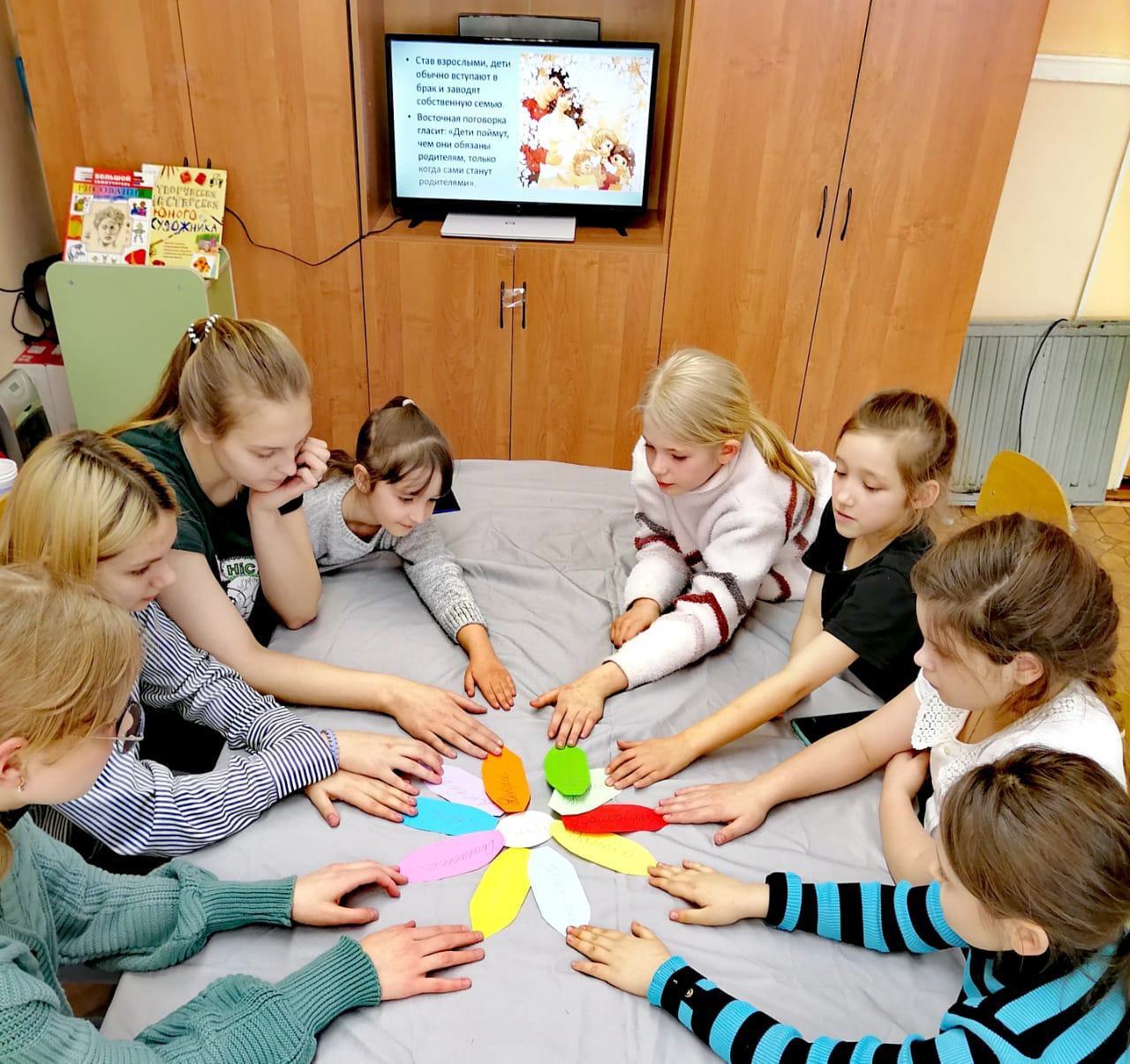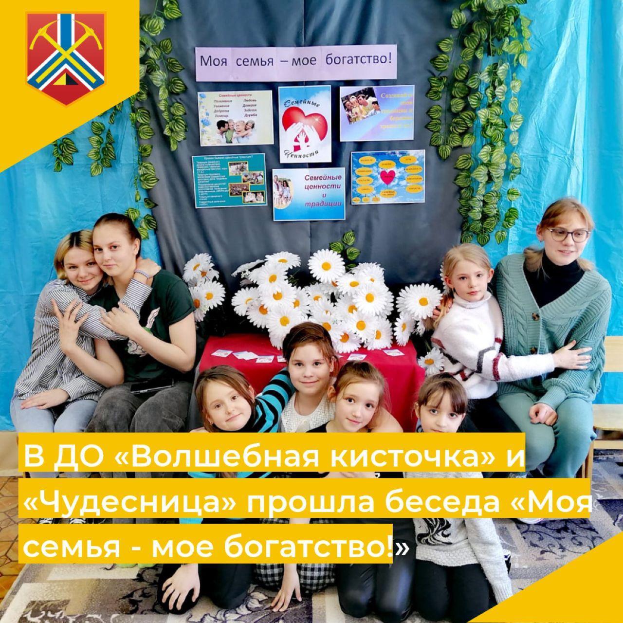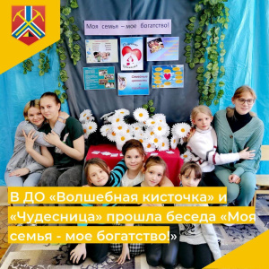 В объединениях "Волшебная кисточка" и "Чудесница" прошло мероприятие "Моя семья - моё богатство". Педагоги Солопова Г.В. и Фёдорова Н.П. рассказали воспитанникам о семейных ценностях, которые необходимо беречь и чтить. Ребята посмотрели видеоролик "Тепло родного очага" и узнали о некоторых примерах семейных ценностей, а после этого создали модель цветка "Семья" на лепестках которого написали, что для них значит это слово.