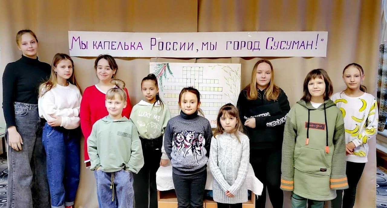 "Мы капелька России, мы город Сусуман" и это не просто слова, что доказали ребята из объединений "Волшебная кисточка" и "Чудесница". Педагоги Фёдорова Н.П. и Солопова Г.В. подготовили для ребят почти квест-игру на знание своего города. Воспитанники отвечали на вопросы викторины, отгадывали кроссворд, рисовали герб и флаг Сусумана. А вот зарисовка схематичной карты города вызвала жаркие споры, какая улица и где расположена а так же расположение объектов на этих улицах. Всё это надо было правильно изобразить.