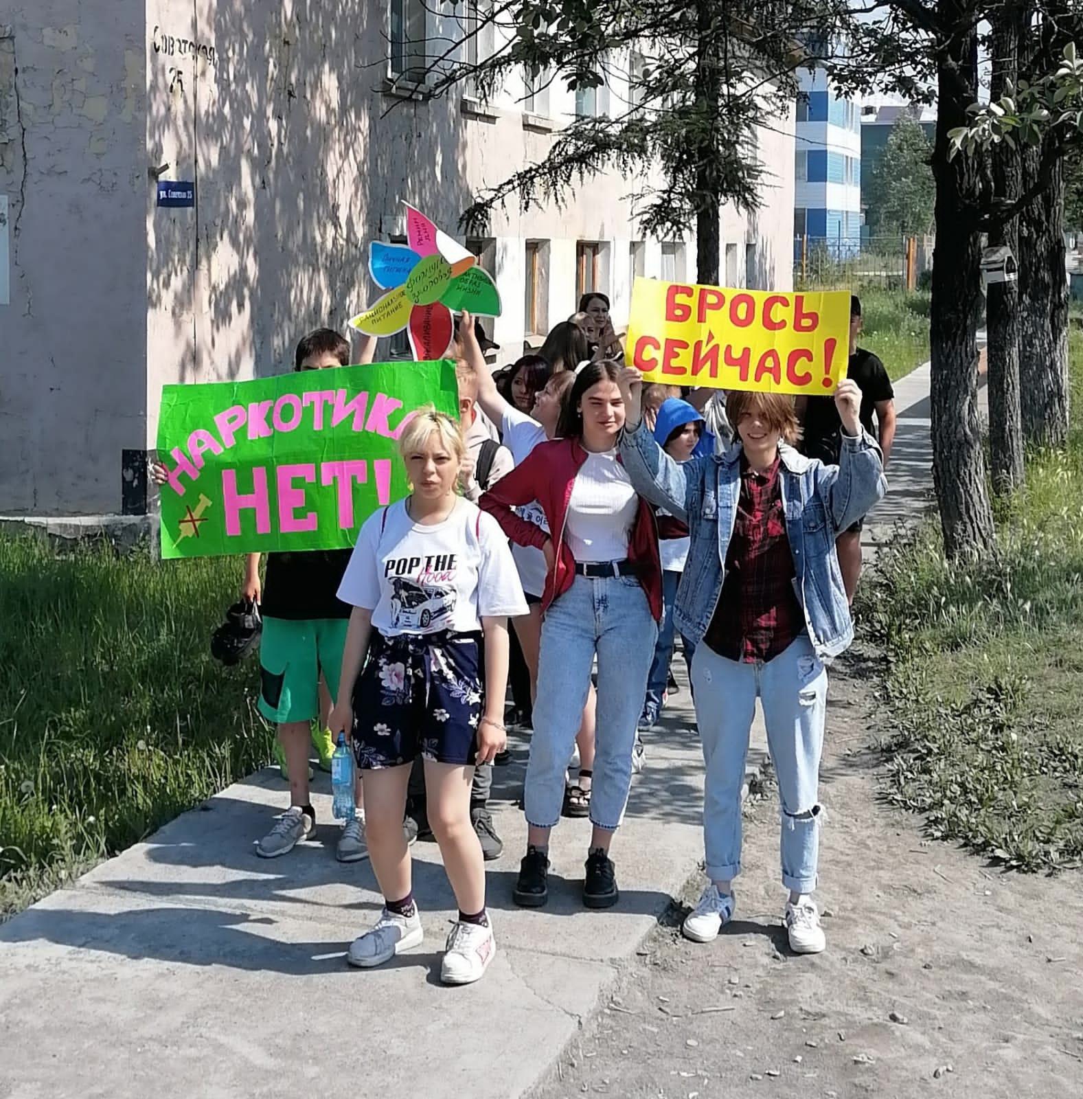 Они с удовольствием принялись за дело. Рисовали плакаты и стенгазету. Приняли активное участие в акции-шествии по городу с кричалками «Нет наркотикам», «Мы против наркотиков». Мероприятие запомнилось подросткам. По окончании дети получили грамоты и призы.