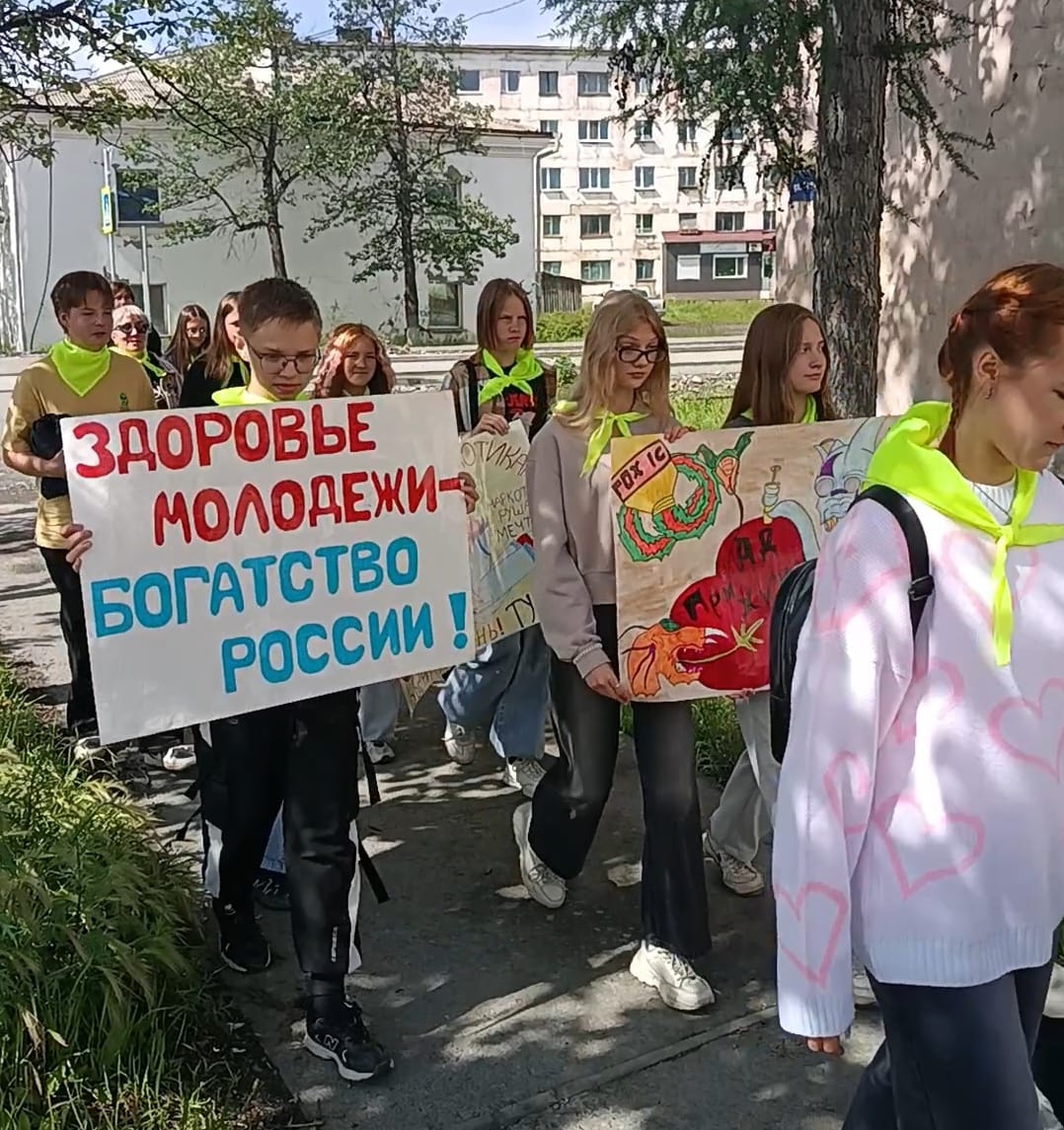 В рамках декады «Жизнь без наркотиков» ребята из лагеря «Фантазер» присоединились к акции «Мы говорим «Нет» вредным привычкам» и вышли с плакатами антинаркотической направленности на улицы города Сусумана.