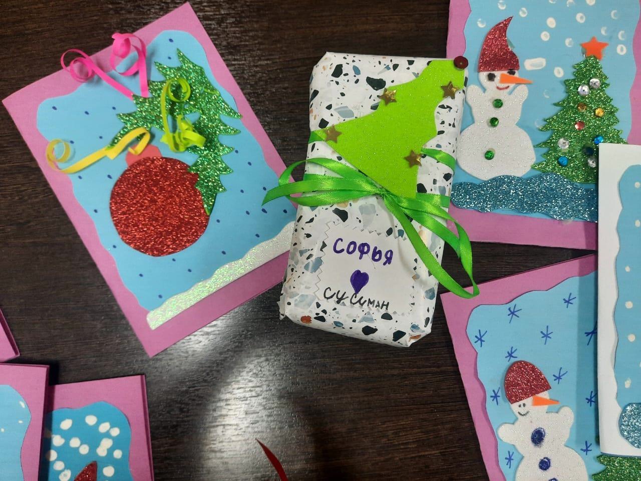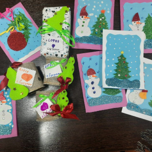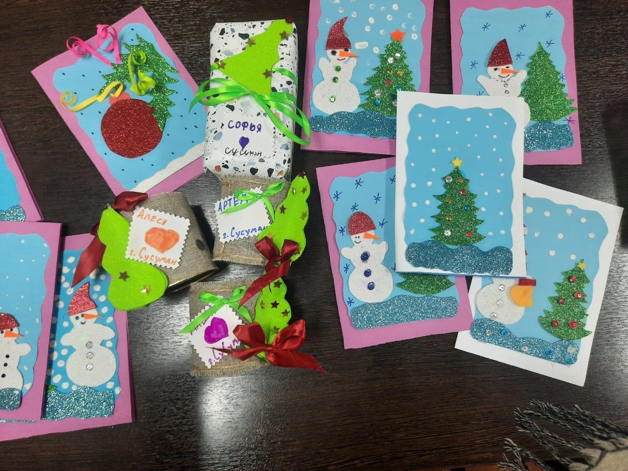 Воспитанники Дома детского творчества детских объединений «Волшебная кисточка» и «Мастерская волшебниц» в преддверии Нового года приняли участие во Всероссийской акции «Новогодняя открытка» и направили свои открытки и подарочки с письмами участникам СВО.