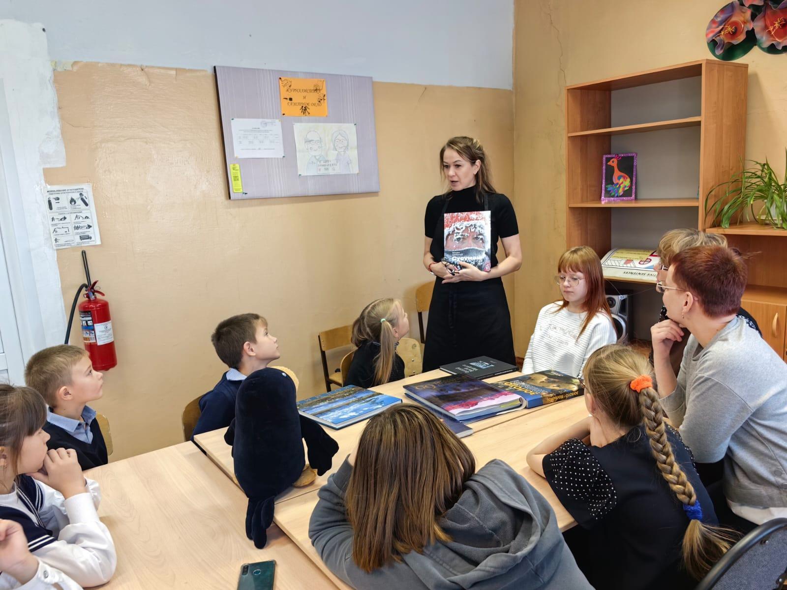 Лиховид Т.Е. рассказала ребятам о времени образования района, о людях, строивших город и посёлки, показала черно-белые фотографии из фотоальбома о Сусуманском районе.