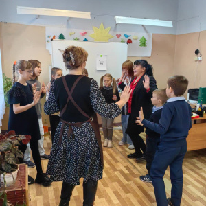Устинова И.Р. рассказала о поселке Озерное, который был закрыт в начале 90-х годов. В этом населённом пункте проживало в основном коренное малочисленное население Севера- эвены, они вели традиционный образ жизни: занимались оленеводством,охотой и рыболовством. В конце мероприятия воспитанники с педагогами с удовольствием станцевали эвенский танец"Хэдэ".