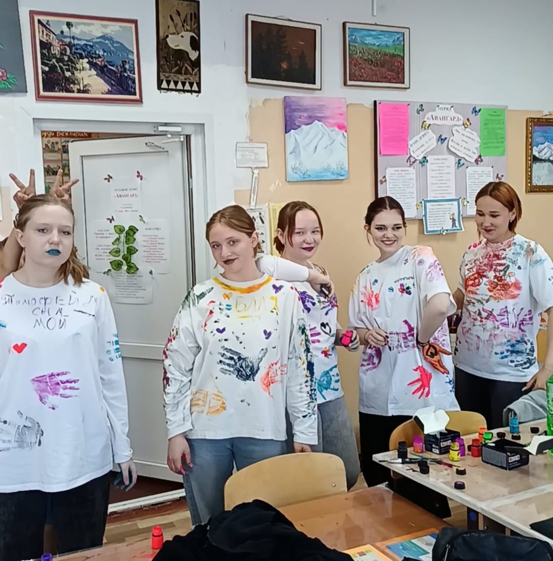 Ребята раскрасили друг другу футболки, оставляя не только отпечатки ладошек и автографы, но и память о ярких событиях этого лета.