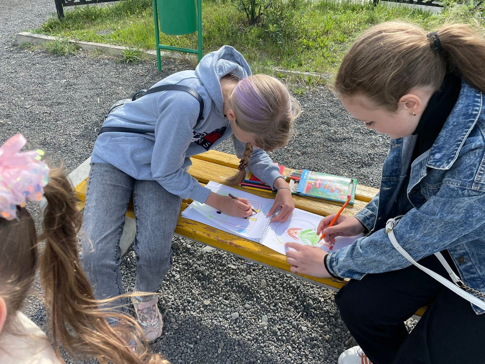 21.06.2022 г. Неорганизованные дети под руководством педагога дополнительного образования Дмитренко А.В. рисовали рисунки на тему «Спорт»