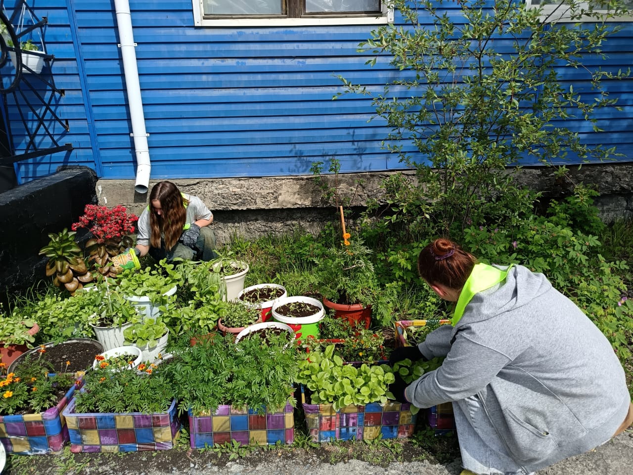 Воспитанники трудового отряда «Авангард» не только помогают с субботниками, но и учатся ухаживать за растениями, которые украшают территорию и фасад здания МБУ ДО «ДДТ»