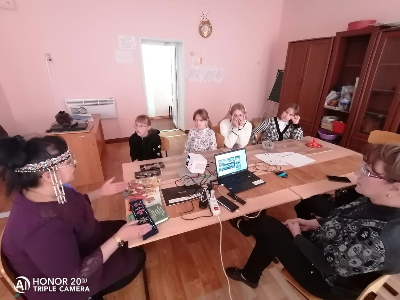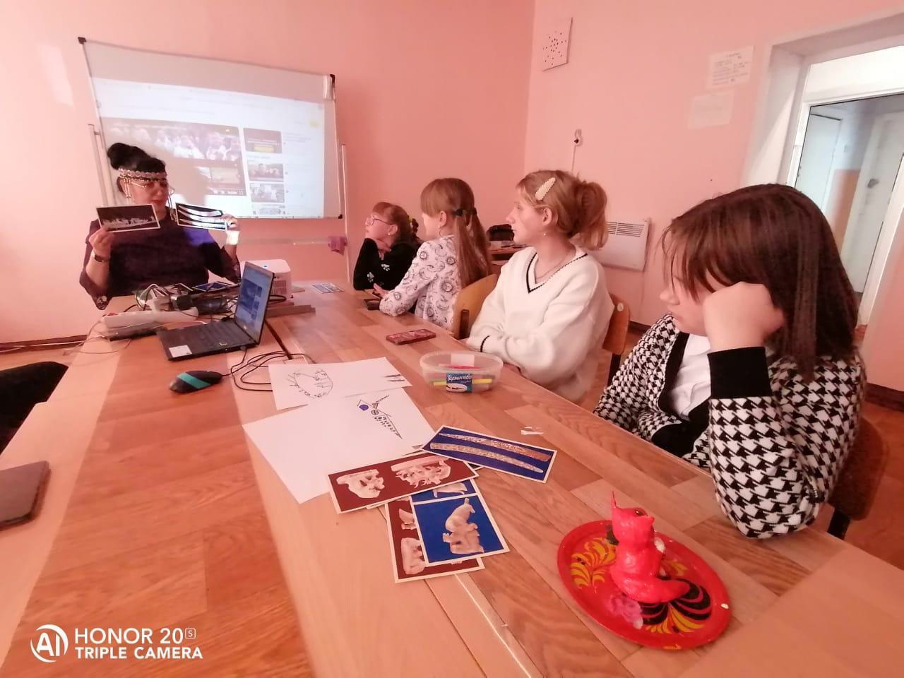 О традиционных промыслах, праздниках, культуре коренных народов Крайнего Севера рассказала воспитанникам детских объединений Ирина Раверовна Устинова, которая сама является представителем одной из малочисленных национальностей- эвенов. Ребята узнали о первой чукотской поэтессе Антонине Кымытваль и первой эвенской поэтессе, исполнительнице эвенских песен Марии Амамич, об их непростой судьбе и творчестве.