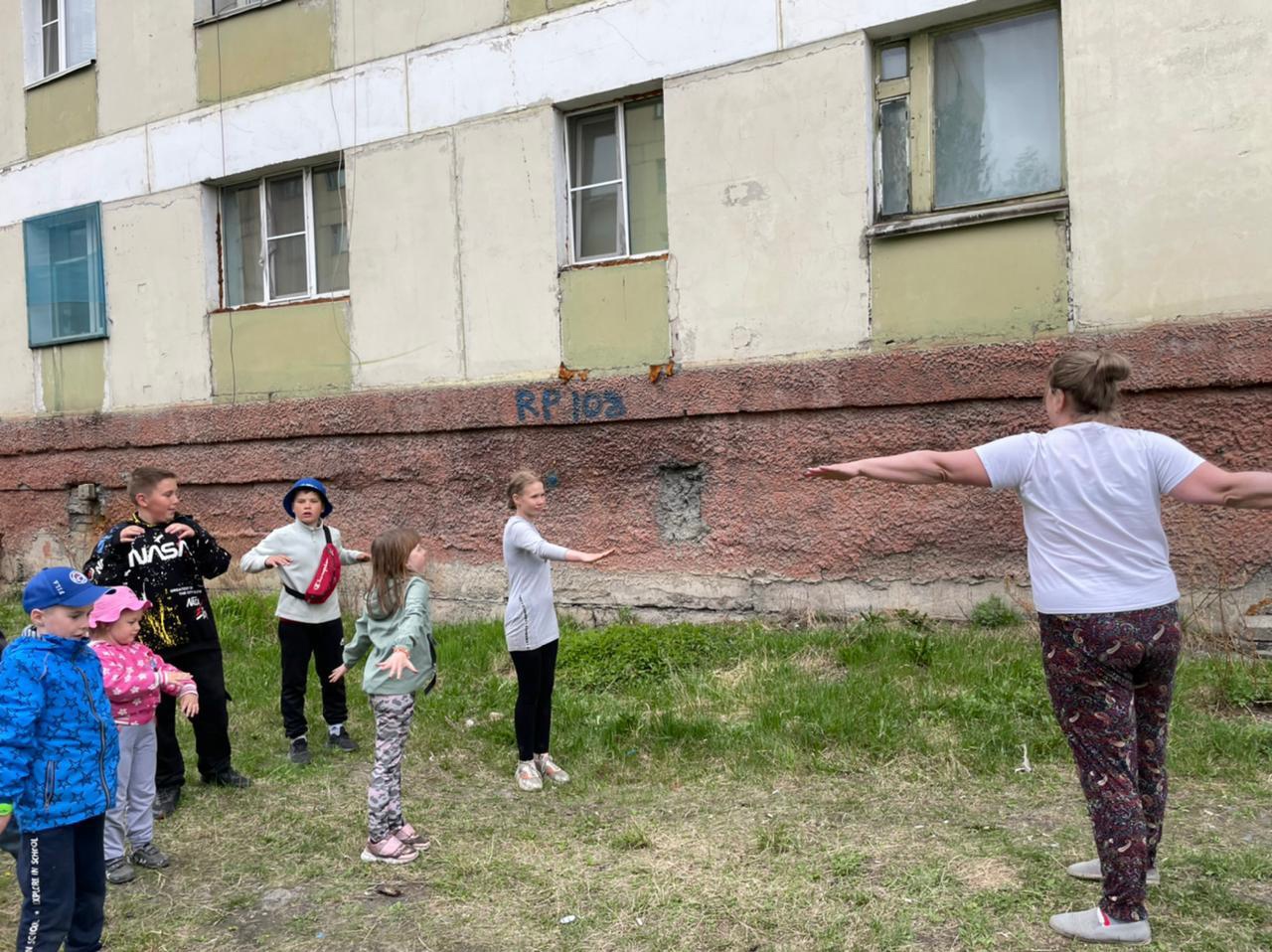 07.06.22. Педагог дополнительного образования Дмитренко А.В. , провела весёлую разминку с неорганизованными детьми на свежем воздухе