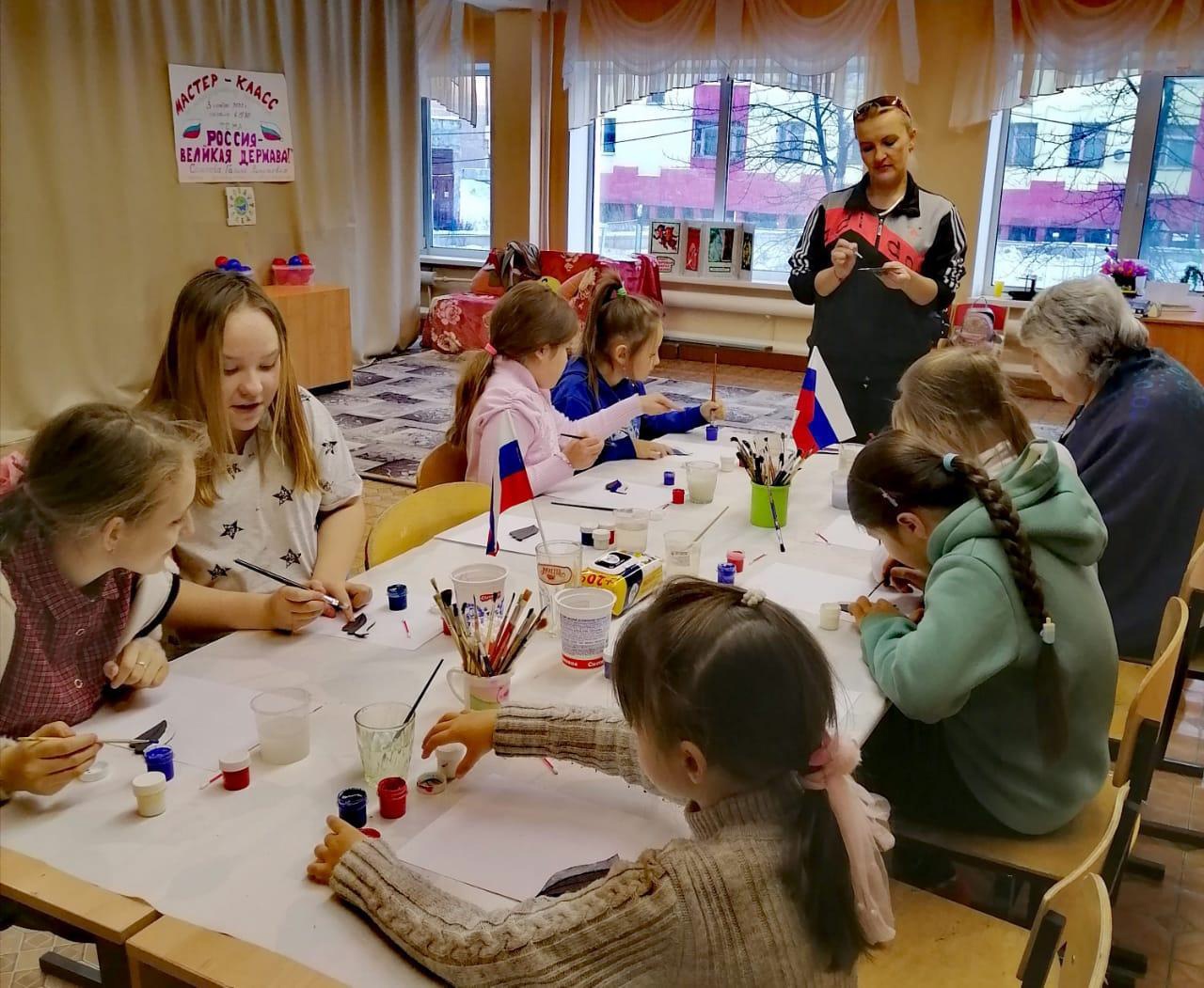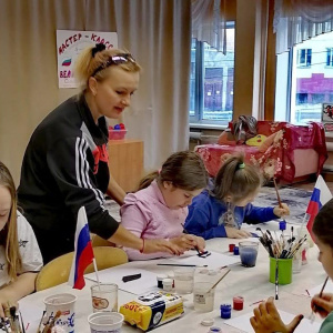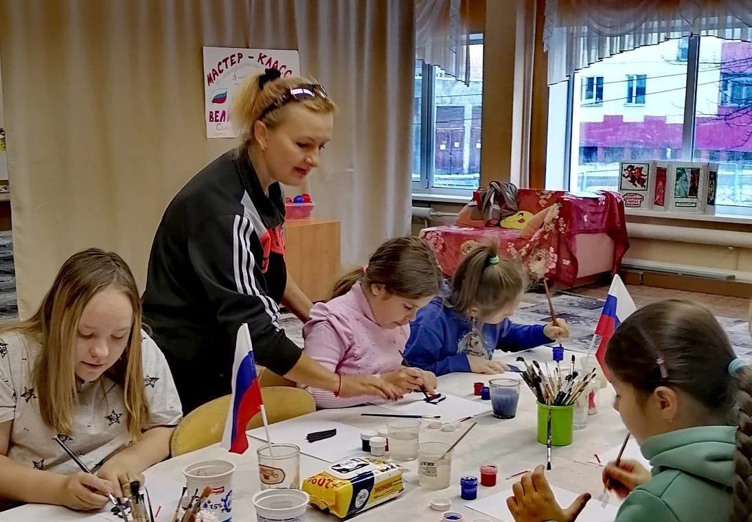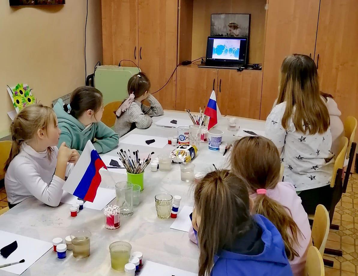 "Россия - Великая держава!". 3 ноября под таким названием пришёл мастер-класс по нетрадиционному рисованию в объединении "Волшебная кисточка". Под руководством педагога Солоповой Г. В. присутствующие педагоги и воспитанники расскрашивали в нетрадиционной технике брошь из фетра, в виде Российского флага. Необычным стало и то, что рисовать пришлось не только кистями, но и ватными палочками по тканевой поверхности. Изготовленые сувенирные броши ребята решили подарить близким им людям к Дню народного единства.