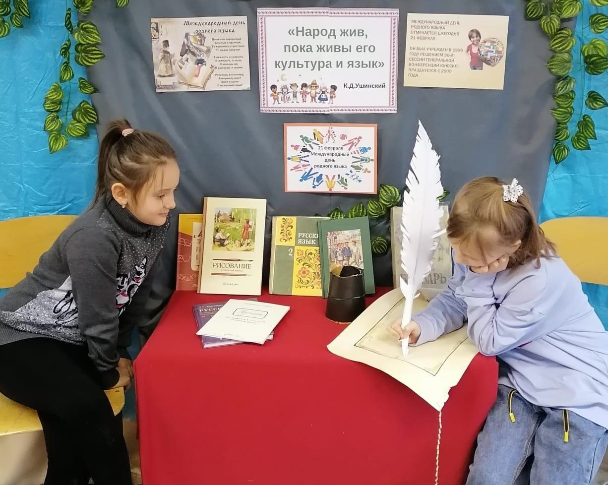 Педагоги дополнительного образования Солопова Г.В. и Фёдорова Н.П. провели в своих объединениях мероприятие "Сокровища родного языка". Воспитанники узнали об истории возникновения праздника, рассматривали и сравнивали учебники русского языка и буквари разных лет. Поучаствовали в викторине "Угадай букву" и учились писать старинные буквы чернильными перьями.