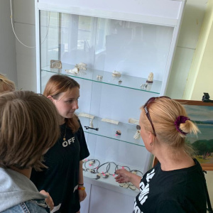 Ребята из ЛОЛ « Фантазёр» посетили выставку. Они с удовольствием рассматривали работы мастеров. Живопись привлекла ребят, особенно картина «Елена» автор Хазиев М.Х. Северная тематика завораживала, природа, сопки. Картина «Сопки», очень понравилась ребятам. «Я увидел сопки и их нарисовал», - шутил Чепурко Даниил. Необычная картина «Сельдь охотская», очень аппетитно выглядит. Картина с «Совами», разрядка для глаз, не сразу найдешь птиц, насчитали 6 сов. Сочные гроздья красной рябины дополняют картину. На отдельной витрине под стеклом представлены работы из кости, небольшие сувениры в виде фигур на Северную тематику. Все ребята получили массу положительных эмоций. Было очень интересно и познавательно. Никто не ушел равнодушным, ещё долго говорили о работах мастеров.