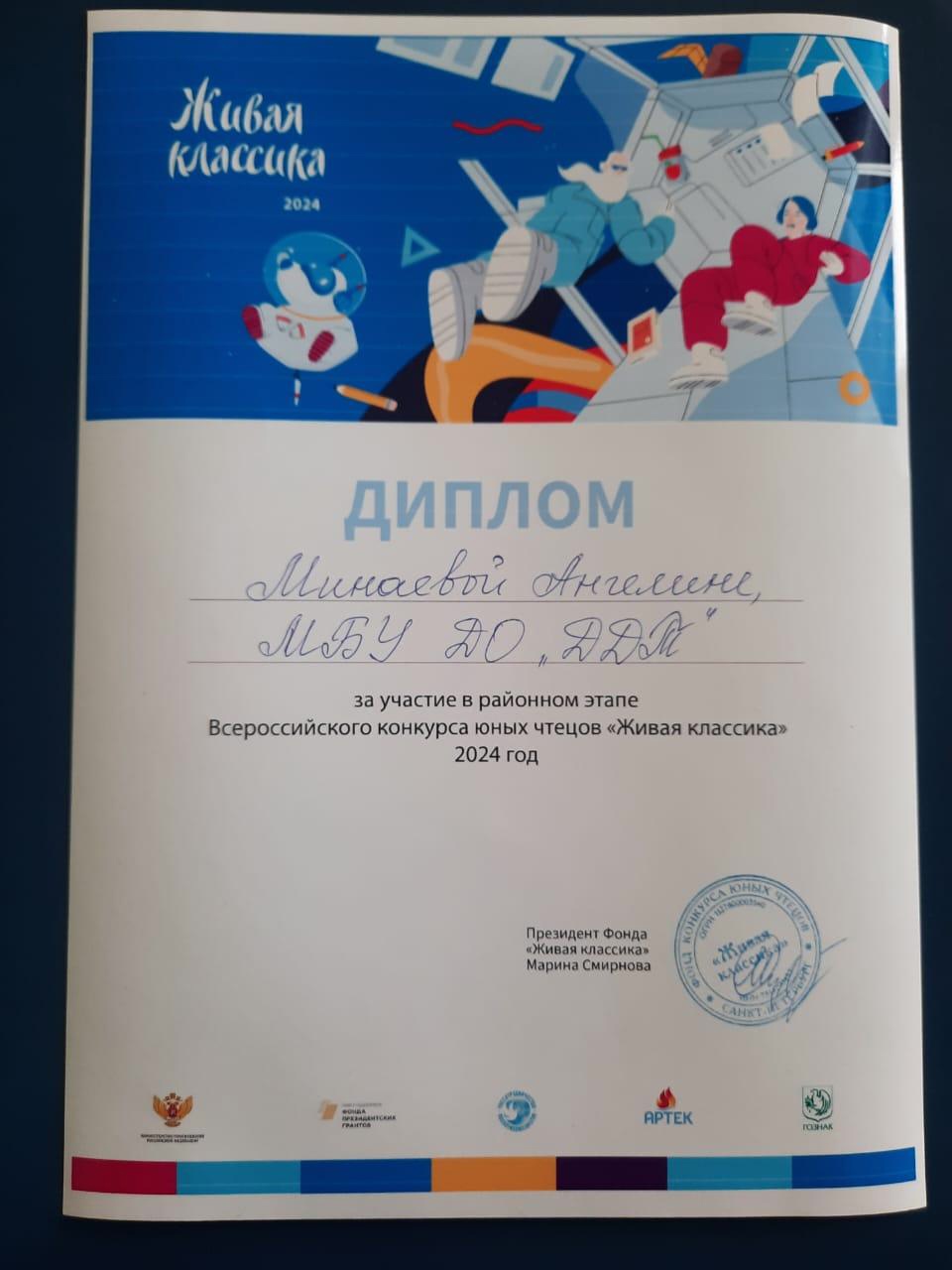 Воспитанница детского объединения «Колымские звезды» Дома детского творчества Минаева Ангелина приняла участие в окружном этапе Всероссийского конкурса чтецов «Живая классика».