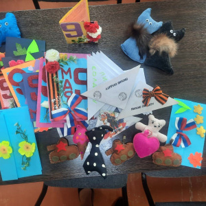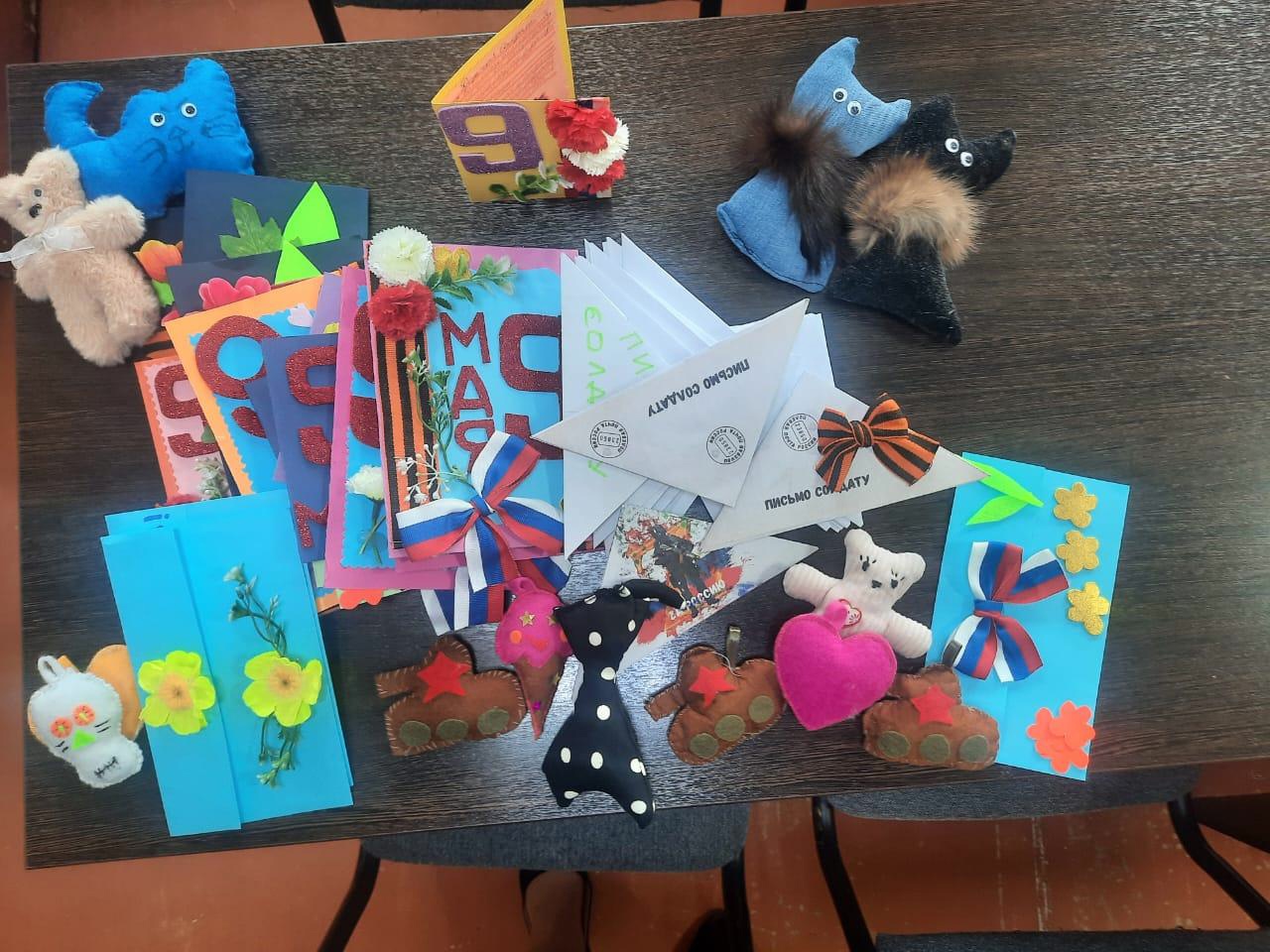 Ребята написали трогательные письма военнослужащим в зоне СВО со словами поддержки и поздравлениями с Днём Великой Победы, сделали своими руками открытки и сшили мягкие игрушки-сувениры.