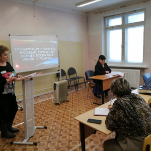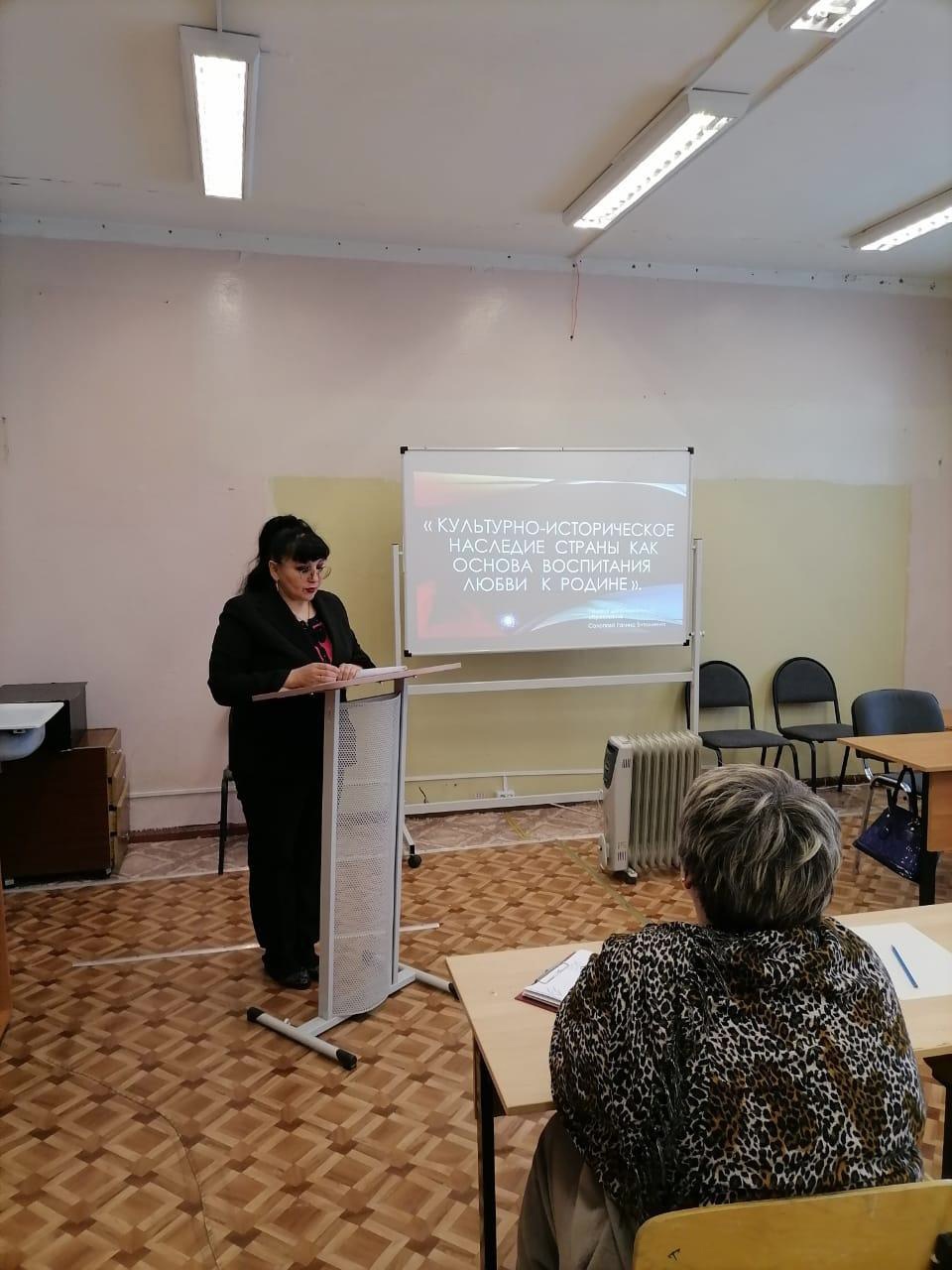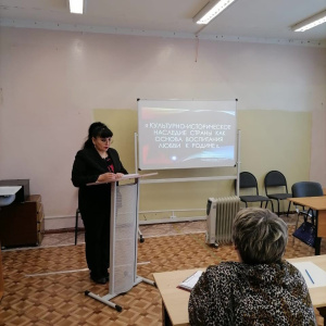 Подводя итоги работы за прошедший 2022 год, который был Годом культурного наследия народов России, педагог дополнительного образования Солопова Г.В. выступила с докладом и мультимедийной презентацией на тему: « Культурно-историческое наследие страны как основа воспитания любви к Родине», в котором рассказала о проведенных мероприятиях в своих объединениях в течение учебного года и отметила, что данная тема остается всегда актуальной. Приобщение воспитанников к участию в мероприятиях по обогащению знаний и уважению традиций народов России, формирует у подрастающего поколения положительные моральные качества.